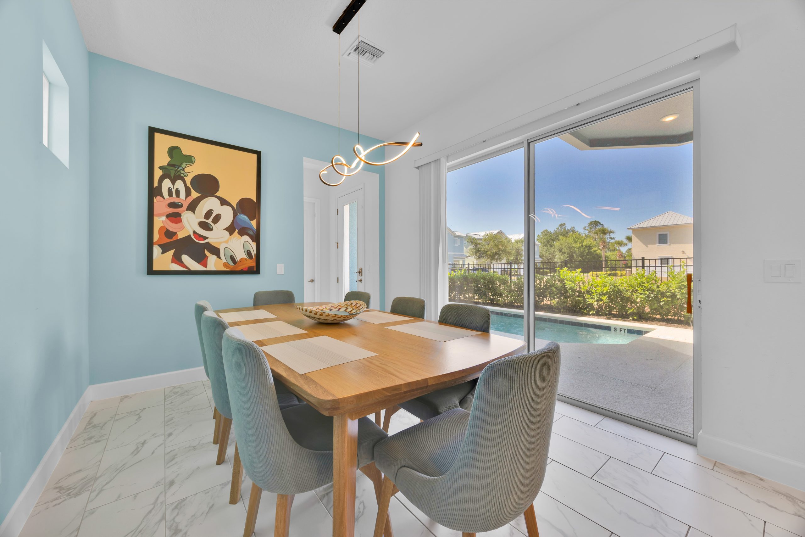 Na área externa, a vila possui uma piscina privativa perfeita para se refrescar após um longo dia nos parques ou para completar uma partida de golfe. Este espaço ao ar livre é perfeito para aproveitar o clima ensolarado da Flórida com uma refeição à beira da piscina na churrasqueira self-service ou sua bebida favorita.