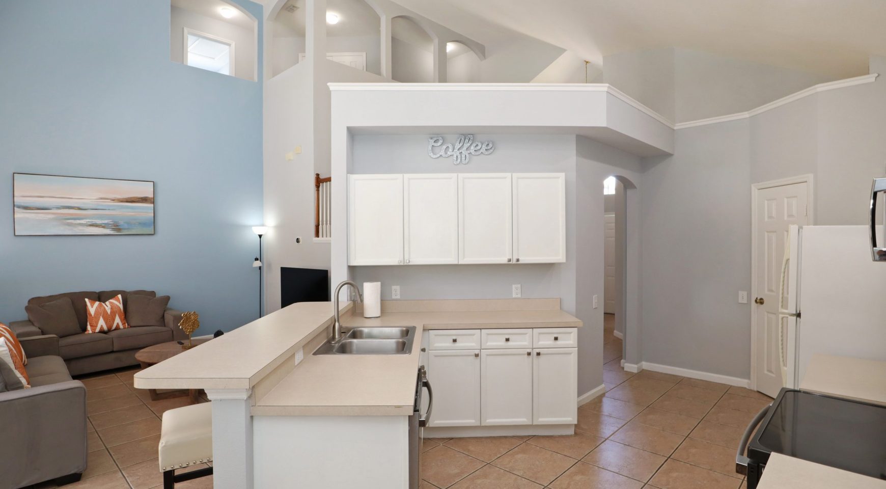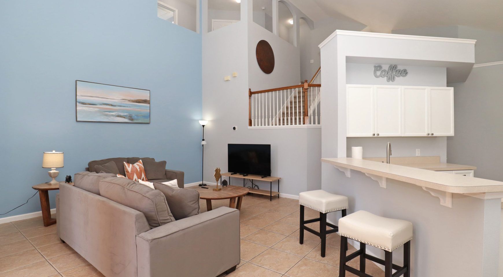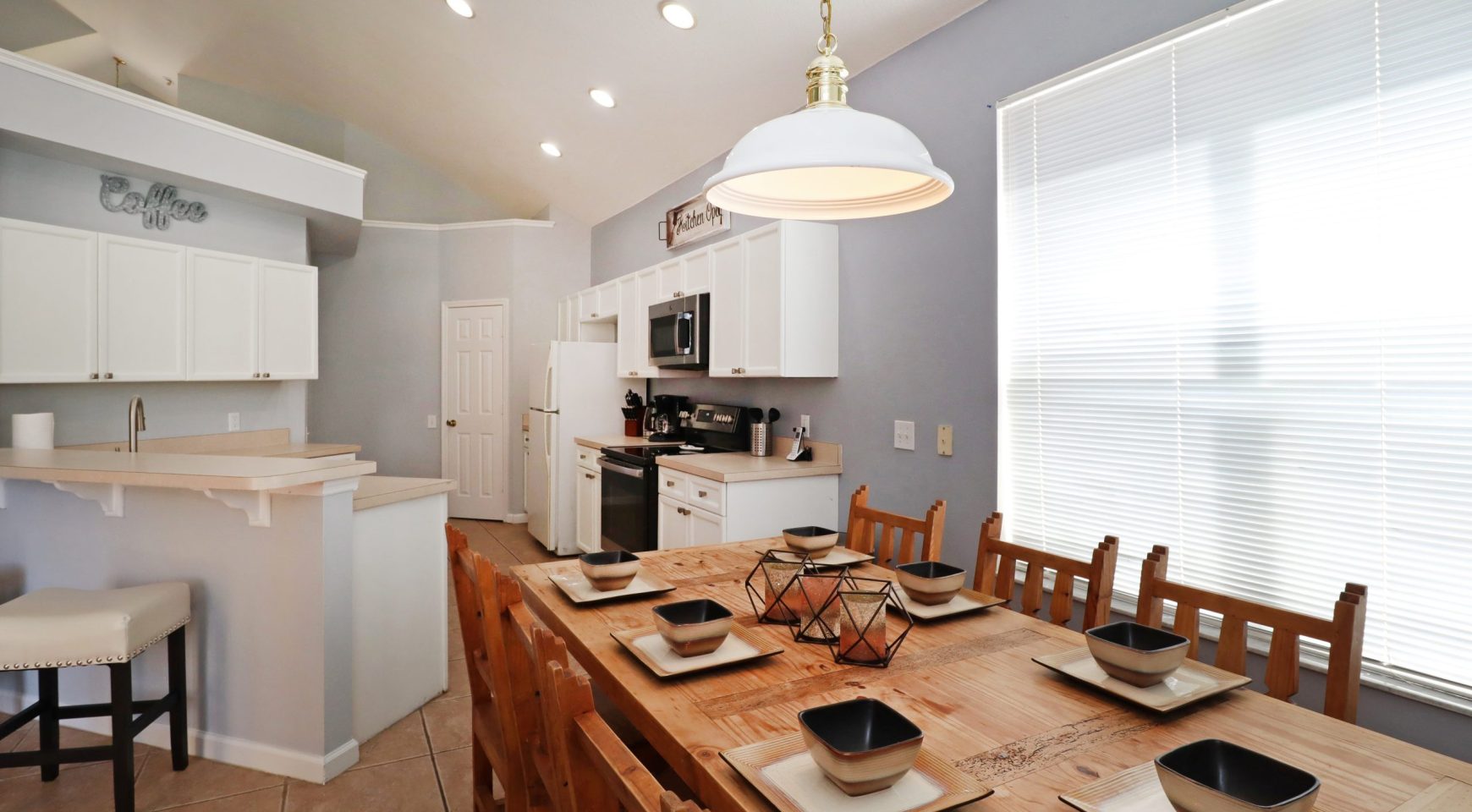 Esta casa única é realçada por tetos abobadados que transmitem uma sensação de paz e tranquilidade. Sob a varanda coberta, você pode sentar-se ao redor do adorável conjunto de jantar em vime com capacidade para seis pessoas confortavelmente. Deite-se nas espreguiçadeiras e aproveite o sol da Flórida ou tome um gole de sua bebida favorita sob as estrelas. Estacionamento grátis. Tão perto de Margaritaville que você quase pode andar! Menos de 20 minutos para a Disney World.