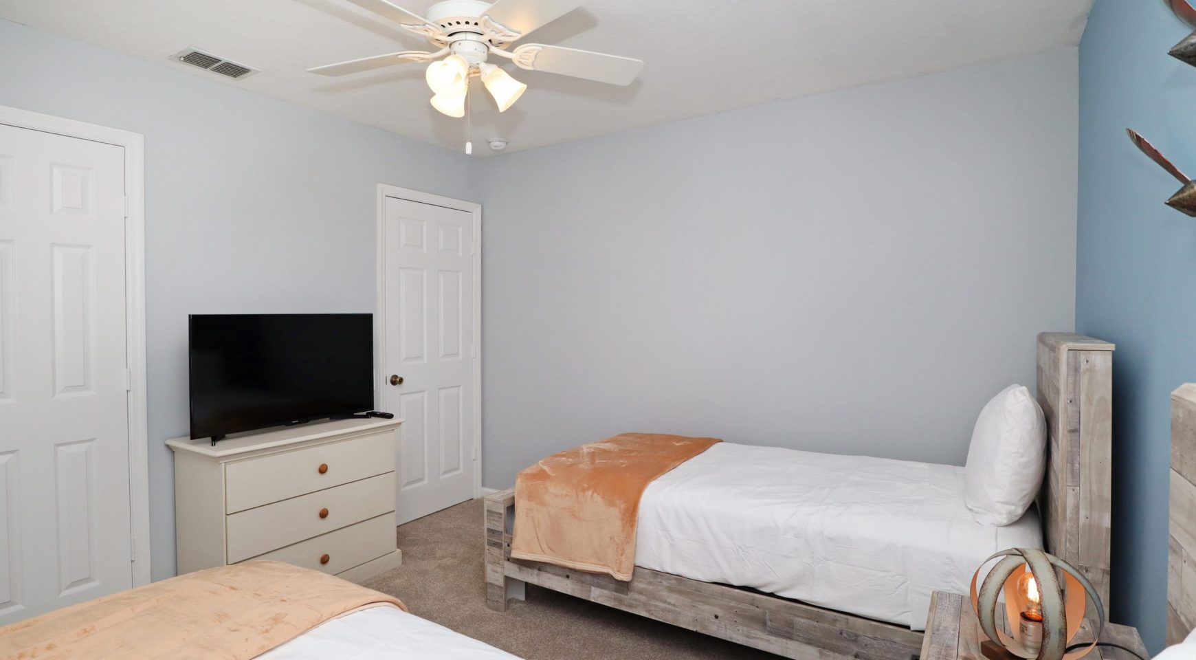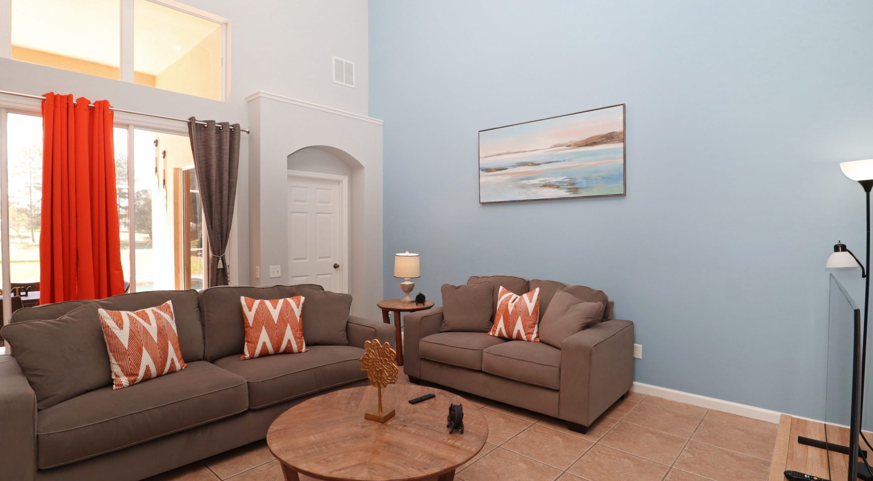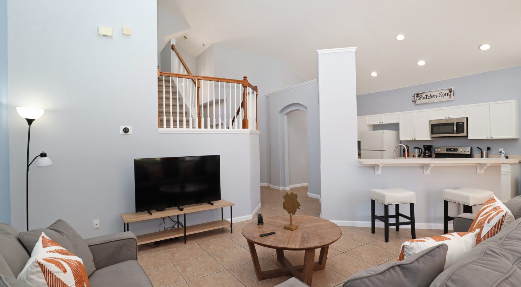 Esta casa única é realçada por tetos abobadados que transmitem uma sensação de paz e tranquilidade. Sob a varanda coberta, você pode sentar-se ao redor do adorável conjunto de jantar em vime com capacidade para seis pessoas confortavelmente. Deite-se nas espreguiçadeiras e aproveite o sol da Flórida ou tome um gole de sua bebida favorita sob as estrelas. Estacionamento grátis. Tão perto de Margaritaville que você quase pode andar! Menos de 20 minutos para a Disney World.