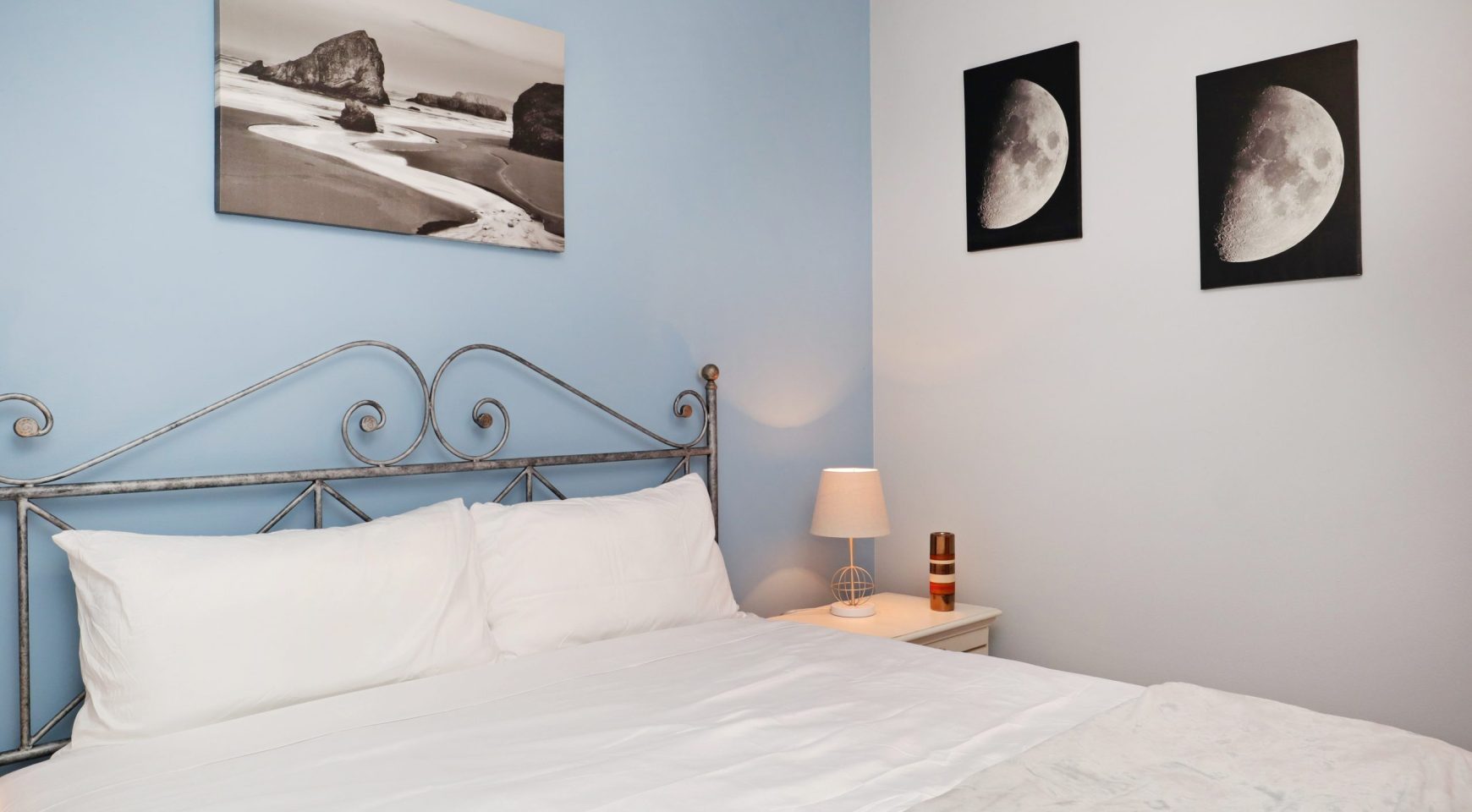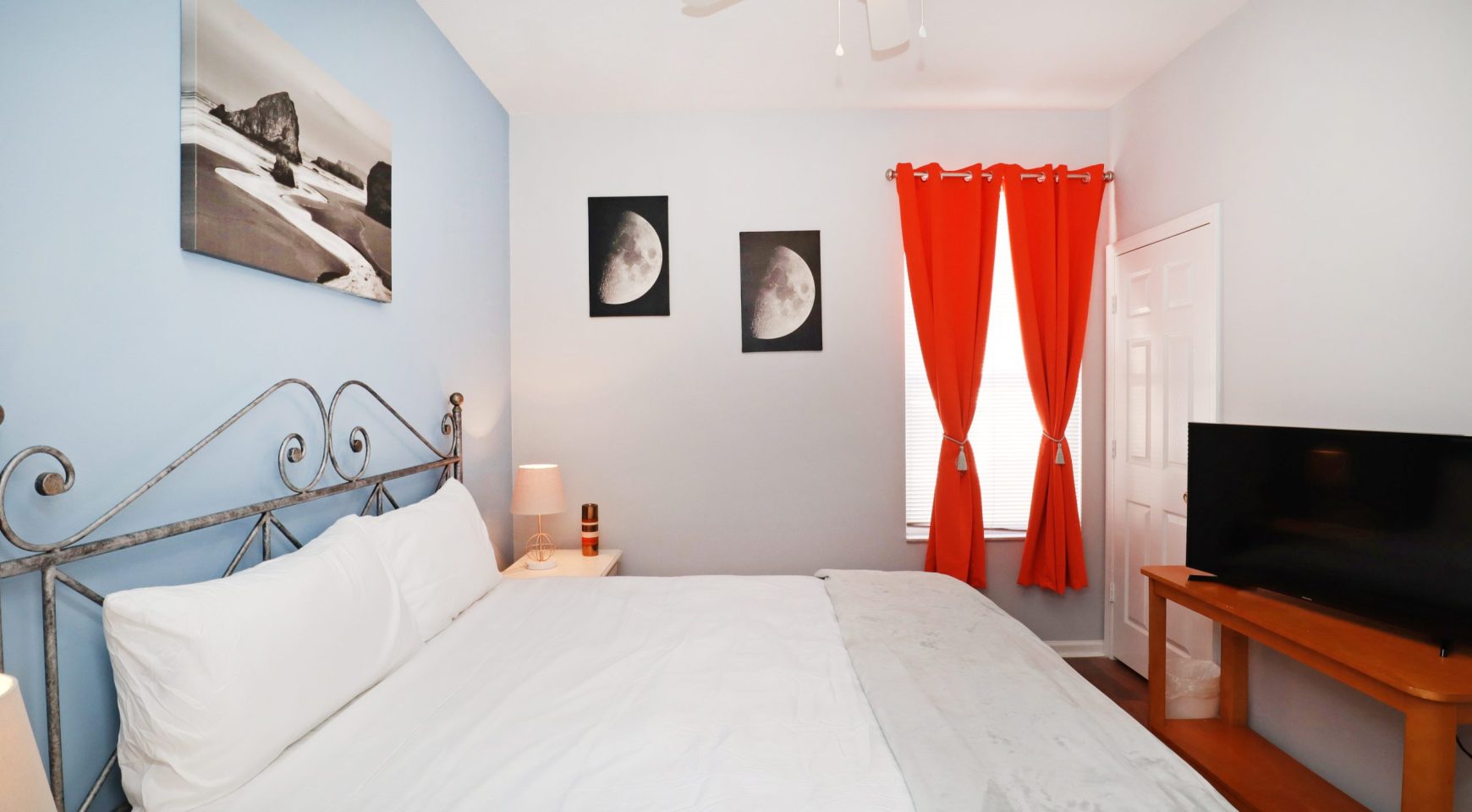 * Quarto Queen com banheiro privativo. Chuveiro na banheira. Armário walk-in. TV inteligente de 40″.